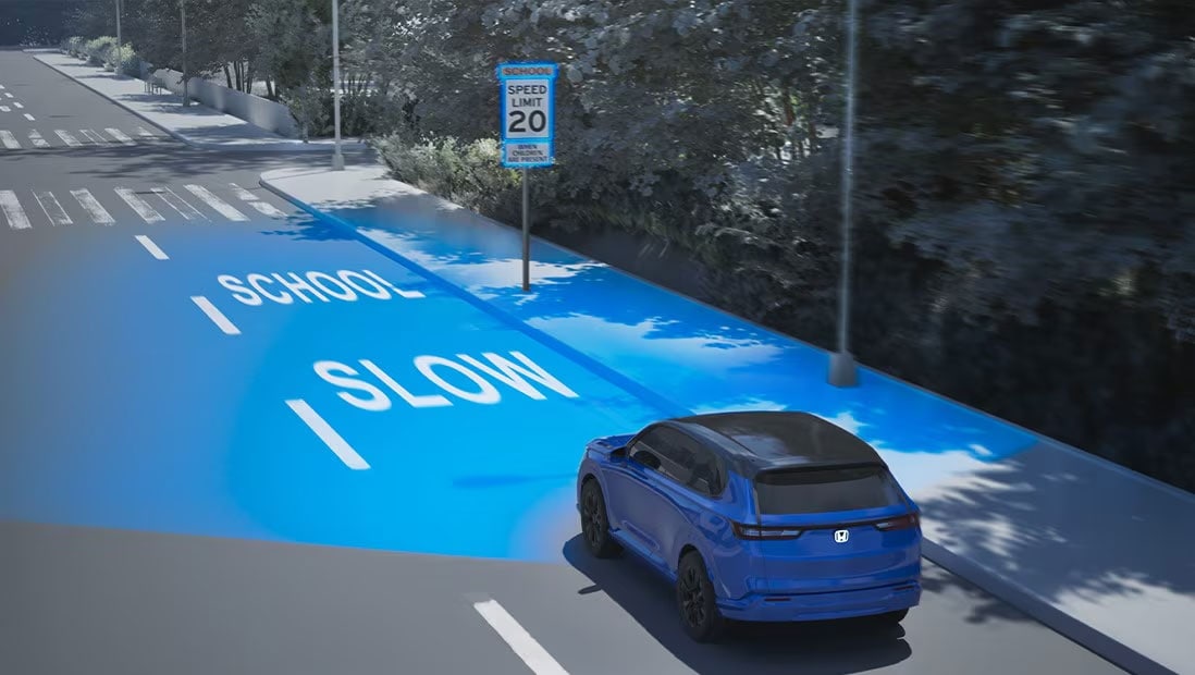 * Honda Sensing Suite: Depending on the circumstances, CMBS may not go through all the alert stages before initiating the last stage (of collision mitigation). CMBS cannot detect all objects ahead and may not detect a given object; accuracy will vary based on weather, speed, and other factors. System operation affected by extreme interior heat. Driver remains responsible for safely operating vehicle and avoiding collisions. Road Departure Mitigation only alerts the driver when lane drift is detected without a turn signal in use and can apply mild steering torque to assist driver in maintaining proper lane position or to slow the vehicle's departure from a detected lane. RDM may not detect all lane markings or lane departures; accuracy will vary based on weather, speed, and road condition. System operation affected by extreme interior heat. Driver remains responsible for safely operating vehicle and avoiding collisions. ACC with Low-Speed Follow cannot detect all objects ahead and may not detect a given object; accuracy will vary based on weather, speed, and other factors. ACC should not be used in heavy traffic, poor weather, or on winding roads. Driver remains responsible for safely operating vehicle and avoiding collisions. LKAS with TJA only assists driver in maintaining proper lane position when lane markings are identified without a turn signal in use and can only apply mild steering torque to assist. The system may not detect all lane markings; accuracy will vary based on weather, speed, and road condition. System operation affected by extreme interior heat. Driver remains responsible for safely operating vehicle and avoiding collisions. TSR cannot detect all traffic signs, may misidentify certain signs and does not include any braking or speed control functions. Accuracy will vary based on weather and other factors. System operation affected by extreme interior heat. Driver remains responsible for complying with all traffic regulations.